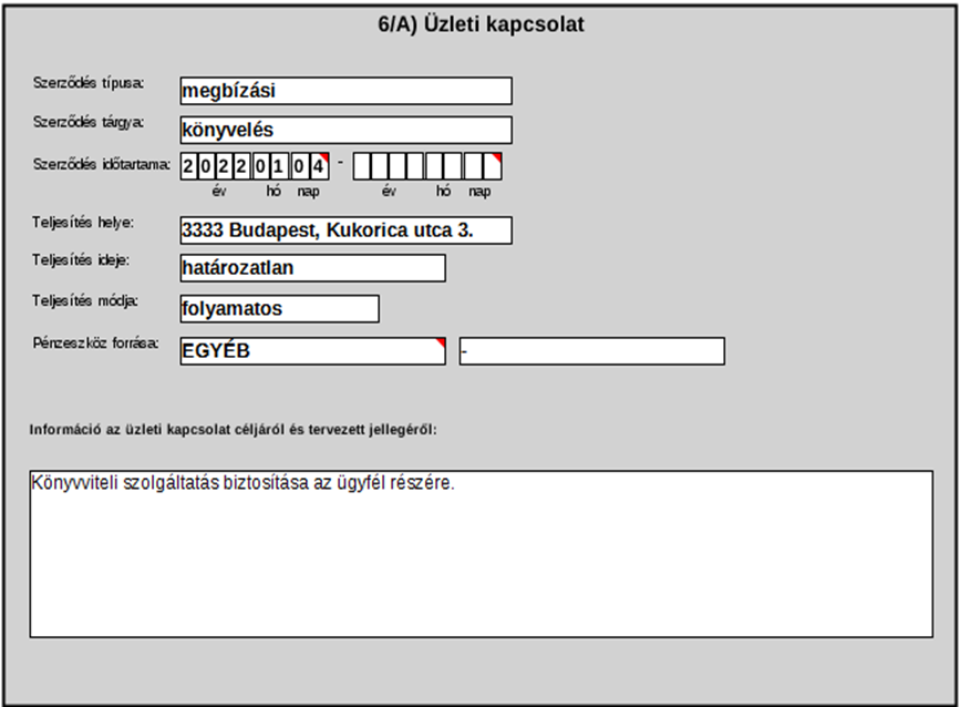 ÜZLETI KAPCSOLAT lap - 6/A) Üzleti kapcsolat