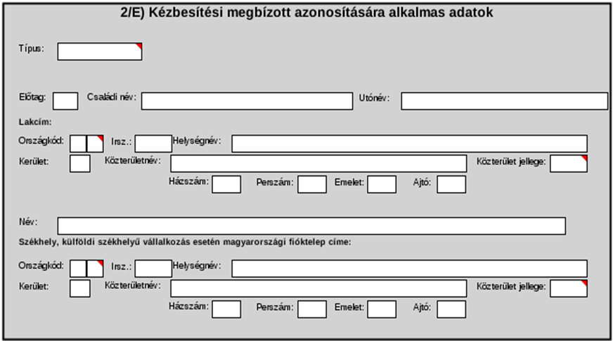 ÜGYFÉL2 lap - 2/E Kézbesítési megbízott azonosítására alkalmas adatok