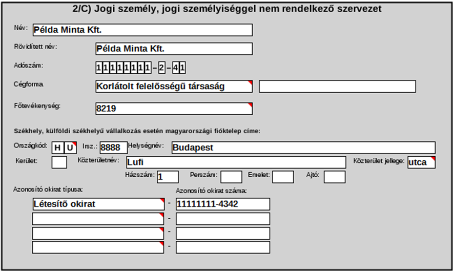 ÜGYFÉL2 lap - 2/C Jogi személy, jogi személyiséggel nem rendelkező szervezet