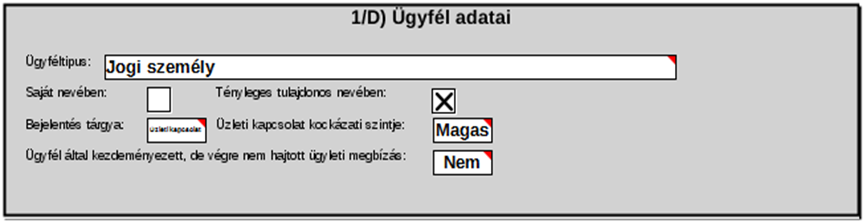Amennyiben magas kockázatú ügyfelet jelentünk be, kötelezően kitöltendő mező annak ellenére, hogy nem minden esetben szükséges beszerezni ezt a nyilatkozatot (pl.: ha nincs releváns pénzeszköz).