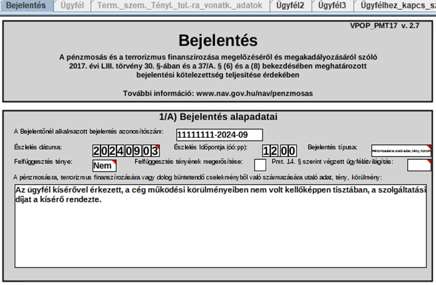 A Pmt. – azaz a pénzmosás és a terrorizmus finanszírozása elleni törvény – legfontosabb kötelezettségei közé tartozik, hogy pénzmosási gyanú esetén a Szolgáltató haladéktalanul bejelentést tegyen a NAV felé a VPOP_PMT17 nevű nyomtatványon.